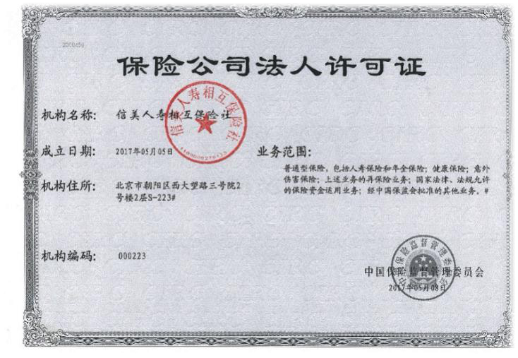 信美相互是持有合法金融牌照的正規(guī)機(jī)構(gòu),