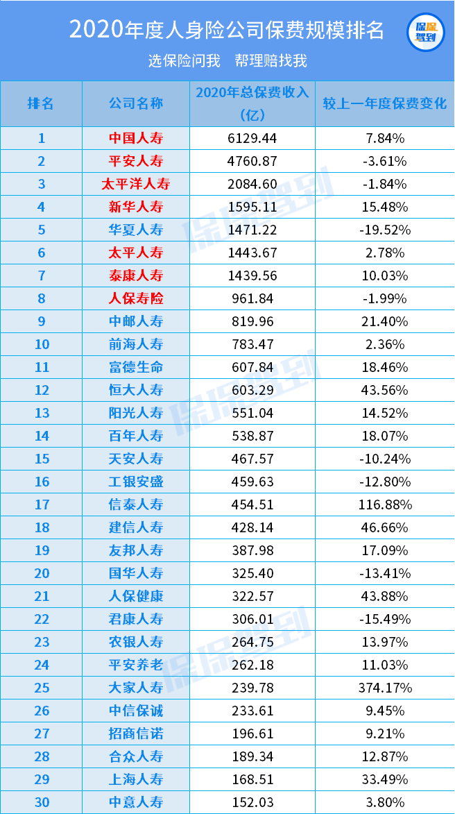 保費(fèi)規(guī)模,咱們常說的老七家都在前10。
