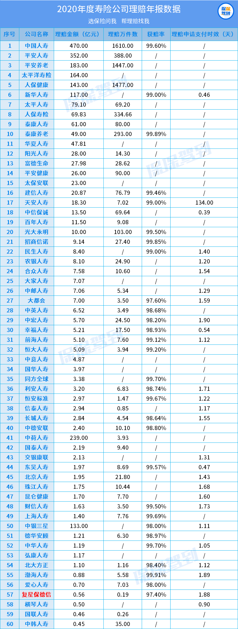 下面列了部分保司的獲賠率和理賠支付時(shí)效。