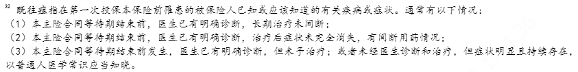 需要注意的是,急性且短期內(nèi)可完全治愈的疾病,一般不屬于既往癥,比如投保前普通的感冒、發(fā)燒、急性腸胃炎等。